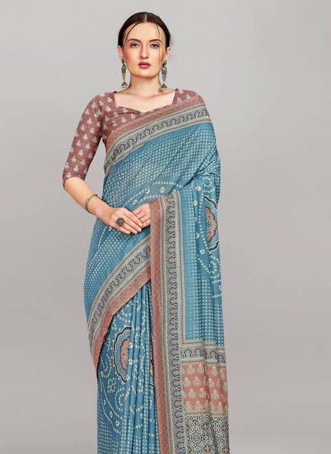 Women's Jacquard Cotton Silk Blend Banarasi Bandhani Fusion Style Woven Saree with Unstitched Blouse