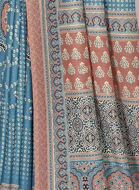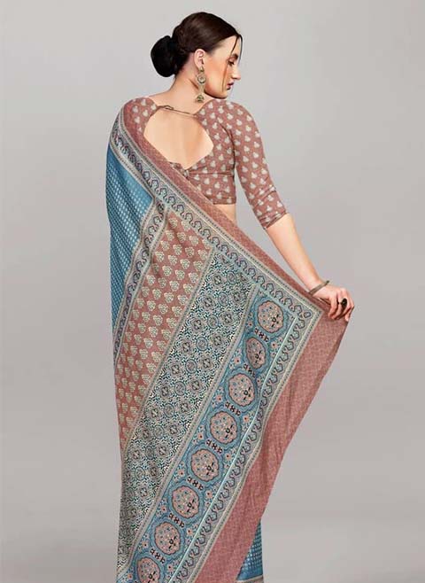 The saree comes with an unstitched blouse. The blouse worn by the model may just be for modeling purposes. Look at the image to see how the blouse looks.