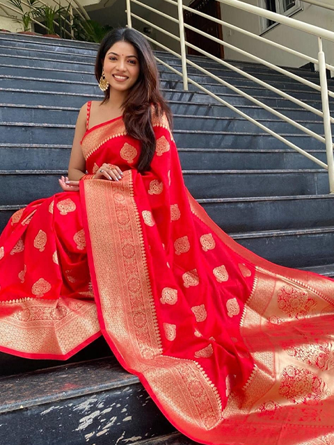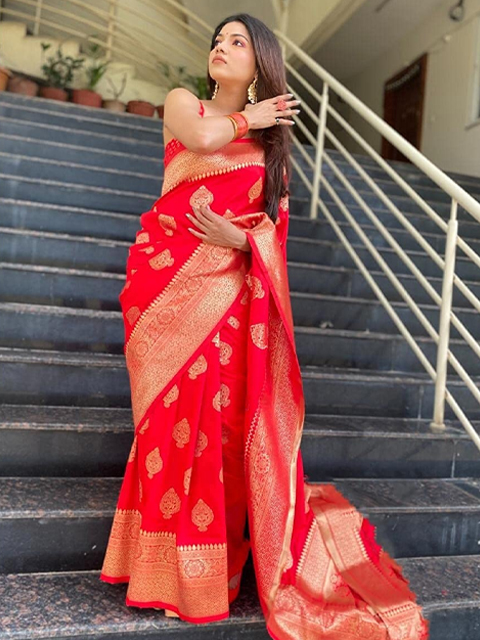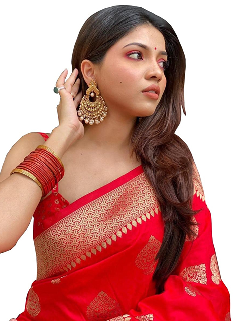 The blouse worn by the model might be for modelling purpose only. Check the image of the blouse piece to understand how the actual blouse piece looks like.