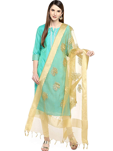 This organza dupatta is adorned with beautiful golden tree motifs all over.A perfect gift for women and girls for all occasions.