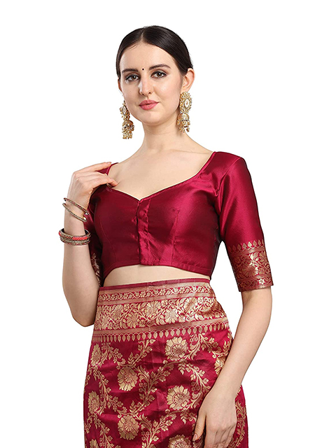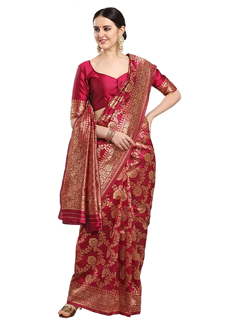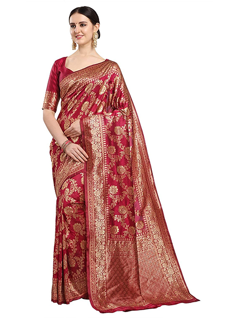 Floral Woven Banarasi Silk Saree with Blouse Piece