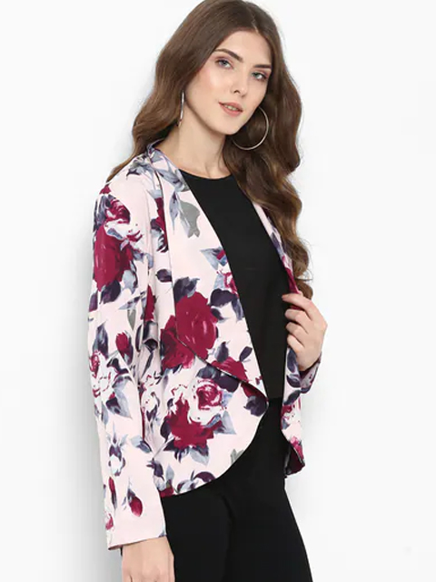 Featuring full sleeves, a collarless front, this jacket is edgy and chic. Pair it with jeans and a tee.
