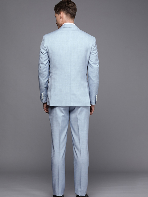 Navy blue solid blazer, has a notched lapel, single-breasted with button closures, long sleeves, three pockets, double-vented back hem, an attached lining with inner welt pockets