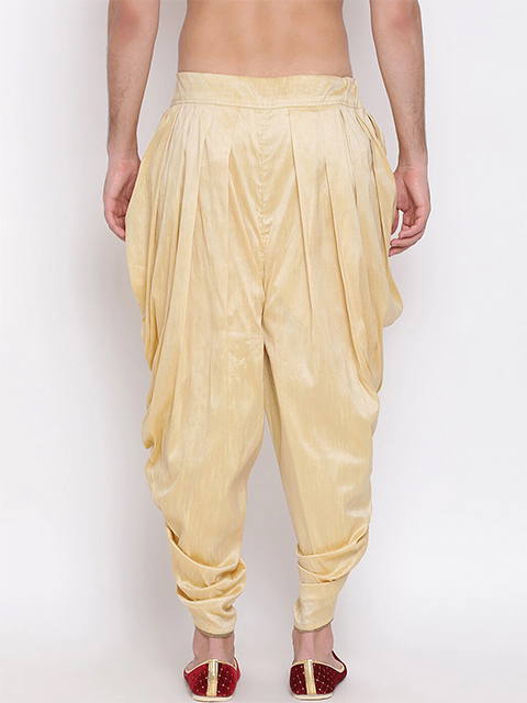 This dhoti brings to you this stylish yet comfortable dhoti pants. Pair it with a juti or a mojari for the royal look.