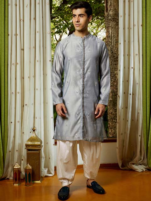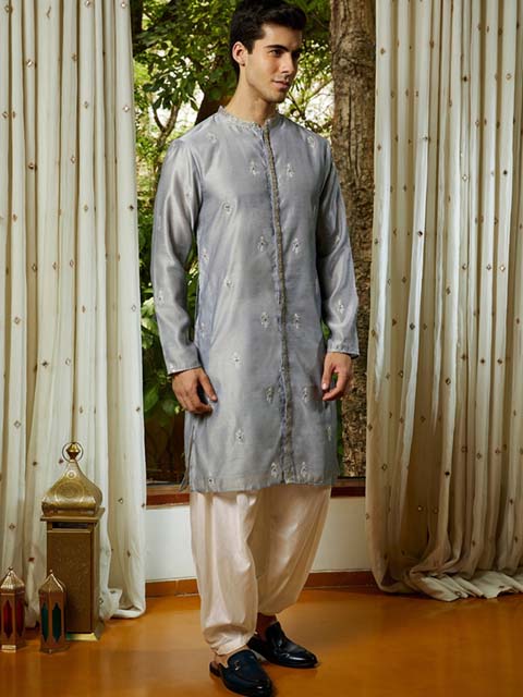 Grey embroidered Kurta with Cream Salwar