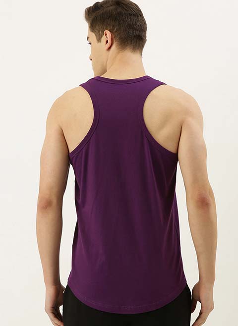 Men Purple Solid Round Neck Pure Cotton