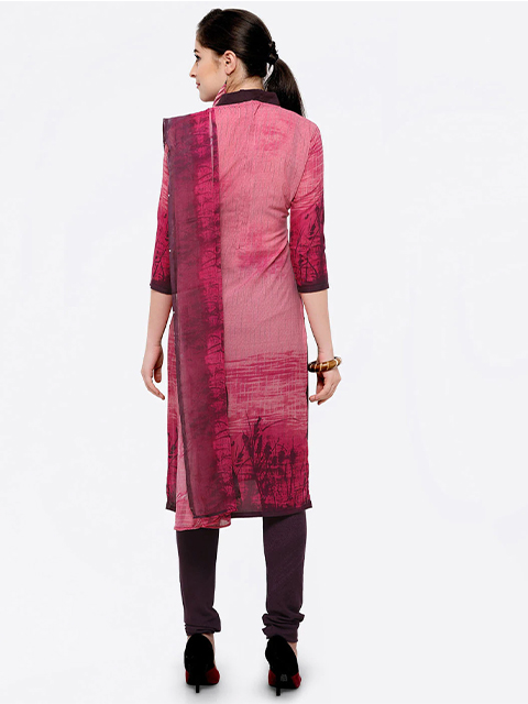 Unstitched dress material includes a top of 2.5 meters, bottom of 2 meters and a dupatta of 2.25 meter. You can get it stitched as per your fitting and choice of design