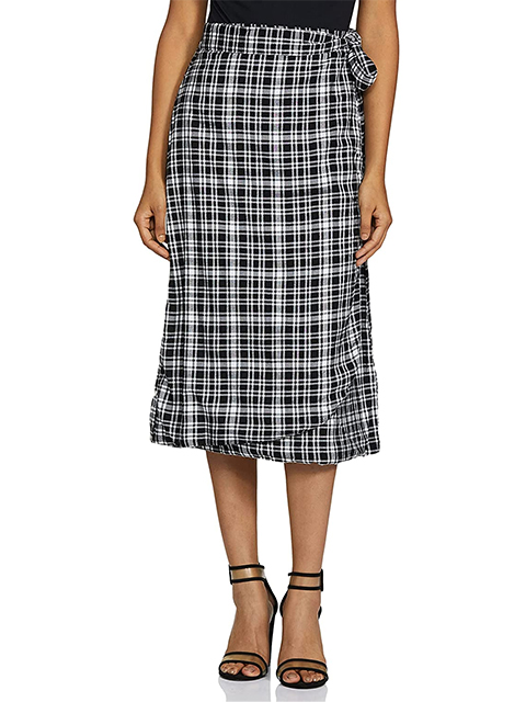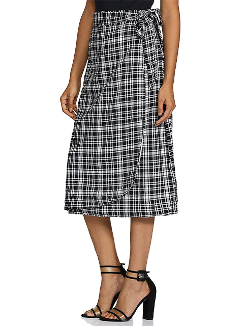Charcoal Grey and Black checked flared skirt, has an elasticated waistband with zip closure, flared hem and a front slit. This skirt looks incredibly adorable. Pair it with a top and boots when you are out on a picnic.