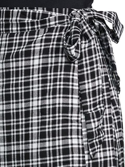 Women Black & Charcoal Grey Checked Casual Flared Skirt
