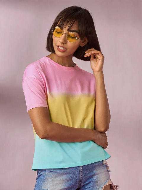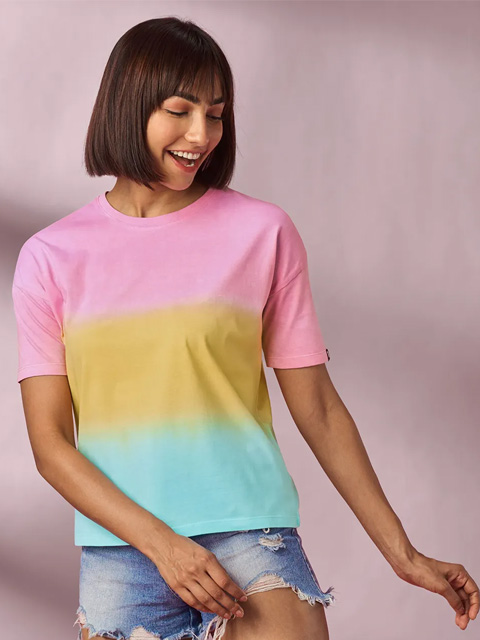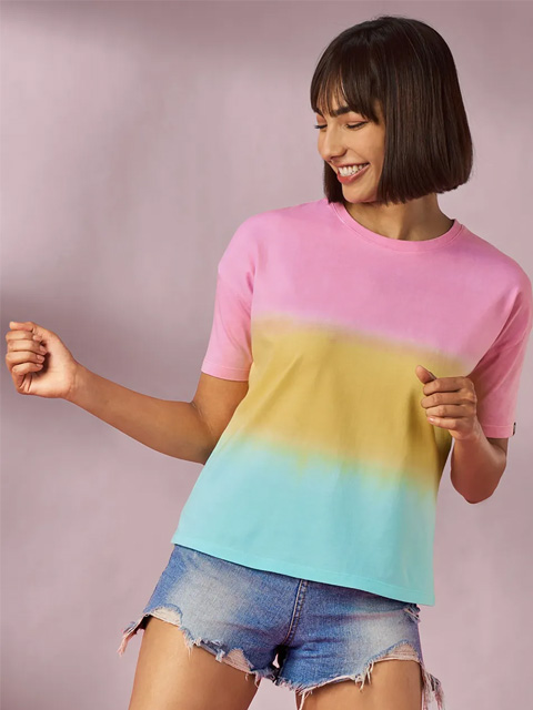 This T-shirt offers a range of quirky merchandise online , including the Tie Dye Dawn Drop Shoulder T-shirt.