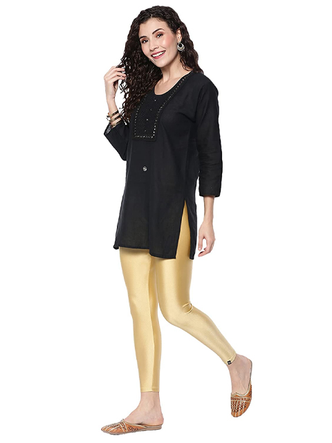 Women Gold-Toned Solid Ankle-Length Shimmer Leggings