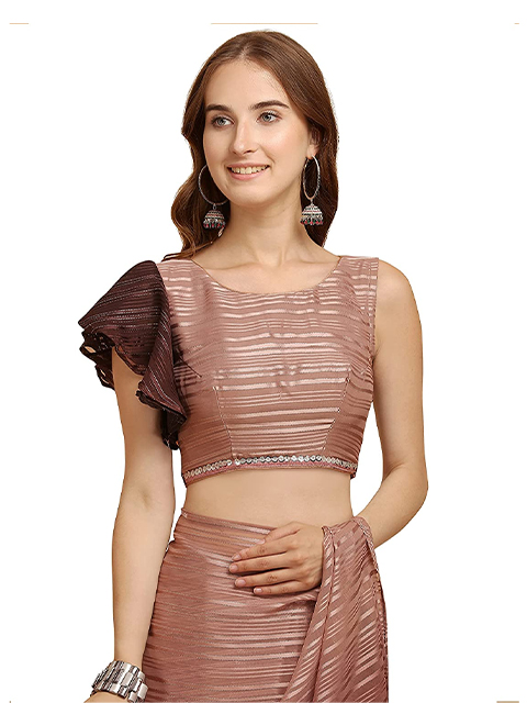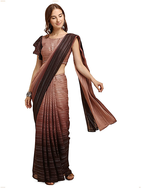 A floral printed saree with a printed border. The saree comes with an unstitched blouse piece. The model may have worn the blouse for modeling purposes only. To see how the actual blouse piece looks, check out the image.