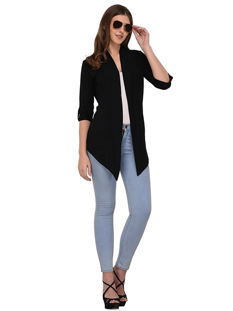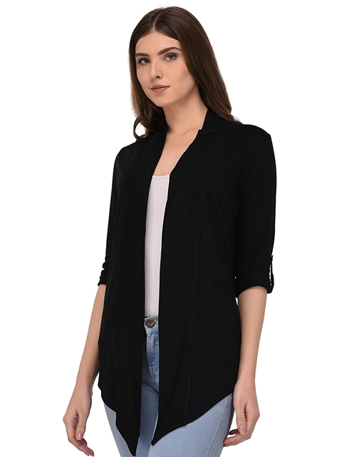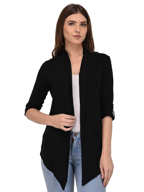 Black Solid Open Front Shrug for Women