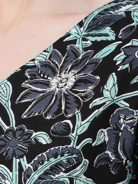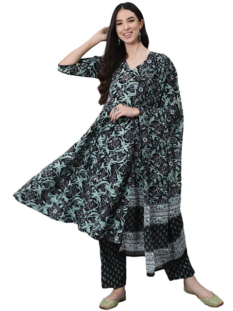 Curate a stunning look by wearing this blue kurta and pant set with dupatta. Tailored to sartorial perfection from premium quality fabric, it assures a soft and soothing touch against the skin. The V collar augments its design. The three-quarter sleeves further speak for itself.