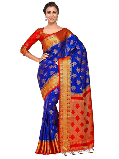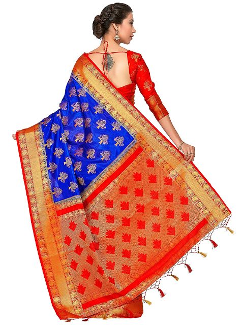 The saree comes with an unstitched blouse piece. The blouse worn by the model might be for modelling purpose only.
