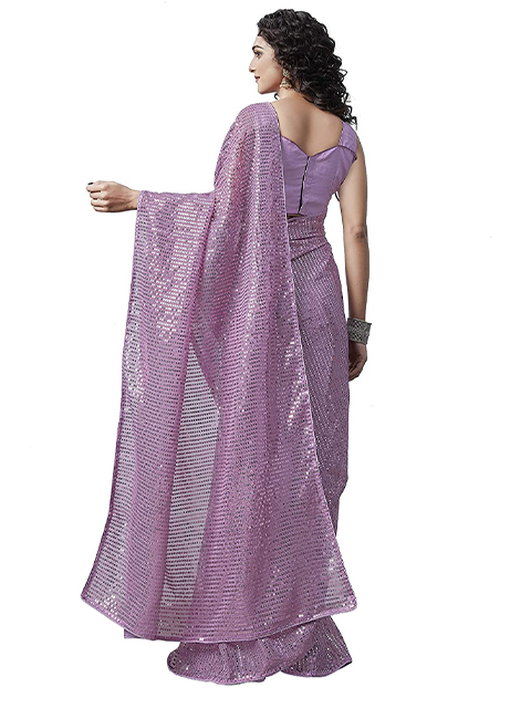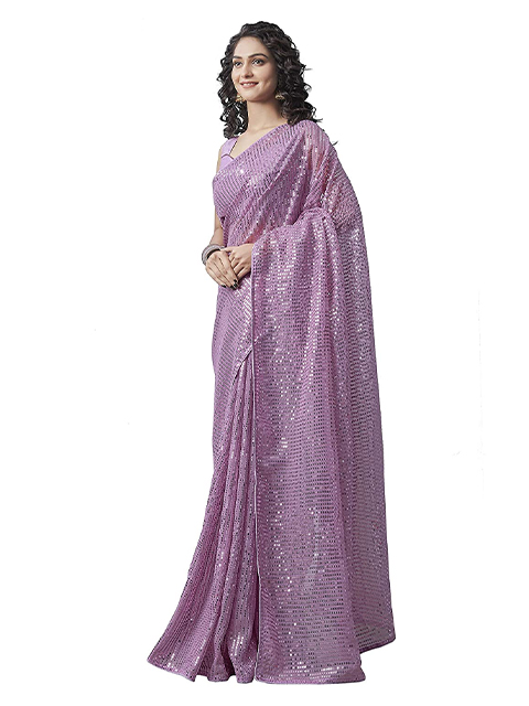 Saree with embellished border. It's decorated with beads and stones. There's an unstitched blouse piece with the saree. Maybe the blouse is just for modeling purposes. You can see how the blouse looks in the image.
