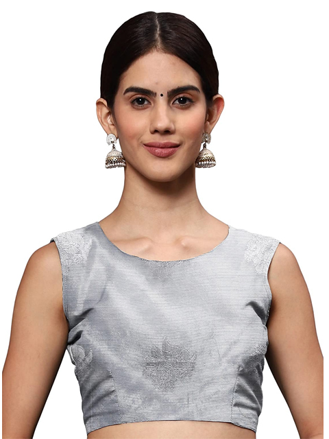 Women Silver Tissue Silk Saree with Unstitched Blouse